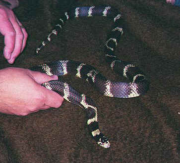 Internationella namn: California Kingsnake, Kalifornisk Kungssnok, Kedjesnok Latinskt namn: Lampropeltis getulus californiae Familj: Colubridae Ursprung: Amerikas västkust, österut mot Mexiko Längd: Upp till ca 180 cm |